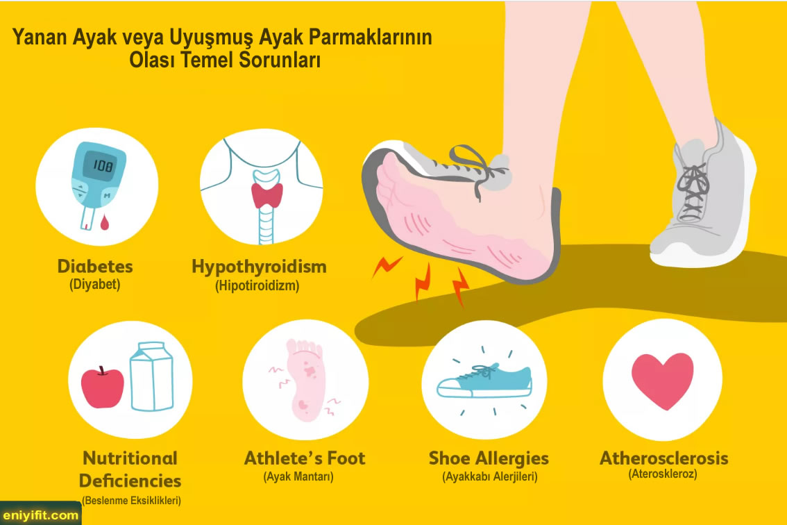Yanan ayaklar, uyuşuk ayak parmakları veya ayak parmaklarınızdaki veya ayaklarınızdaki karıncalanma, yürümekten rahatsız edici semptomlardan daha fazlasıdır. Diyabet ve diyabetik periferik nöropati olarak bilinen durumun uyarı işaretleri olabilir. Eğer tedavi edilmezse, ayak ülserlerine ve potansiyel olarak amputasyona yol açabilir.#eniyifit.com